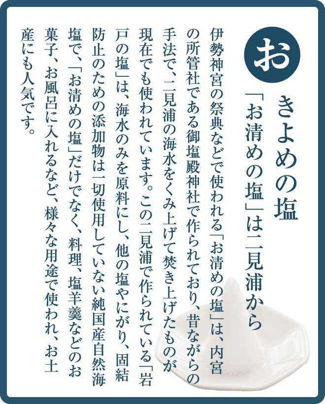 伊勢には、旅人を迎えてきた長い歴史の中で育まれた、多彩な食の魅力があります。古くからの伝統料理や、地元の素材を生かした郷土の味、心なごむ甘味まで。まちを歩けば、伊勢ならではのやさしい味にきっと出会えます。